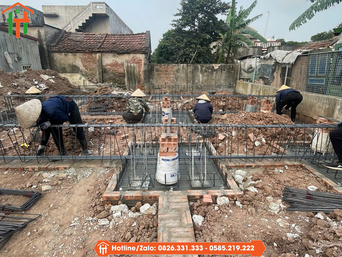 Quá trình đào móng được triển khai theo đúng bản vẽ, đảm bảo chiều sâu và kích thước phù hợp với tải trọng của nhà 2 tầng mái Nhật. Đây là bước nền tảng quyết định độ bền lâu dài của công trình trong tầm tài chính 1,55 tỷ.