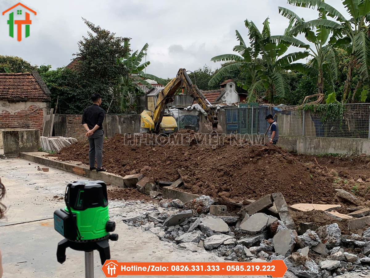 Sau khi chốt thiết kế và dự toán trong ngân sách 1,55 tỷ, công trình chính thức khởi công. Đây là dự án trọn gói được HT-Home Việt Nam thực hiện từ khâu thiết kế đến thi công hoàn thiện.