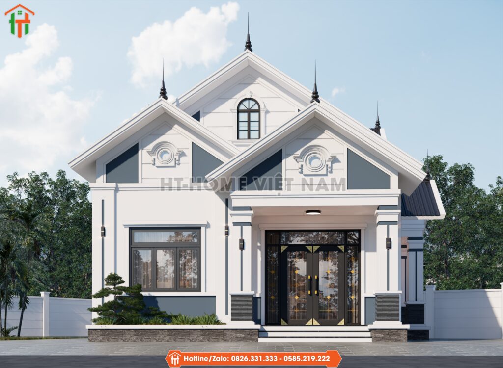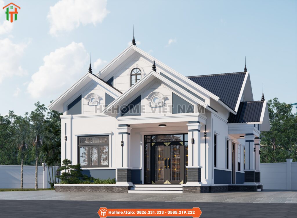 Khi bắt tay vào lên ý tưởng thiết kế mái thái 1 tầng, HT-Home Việt Nam luôn hướng đến sự hài hòa giữa thẩm mỹ, công năng và cá tính riêng của gia chủ. Căn nhà dưới đây là ví dụ điển hình: không quá lớn nhưng đủ tinh tế, sang trọng và quan trọng nhất là đáp ứng đúng nhu cầu sống an yên của một gia đình trẻ.