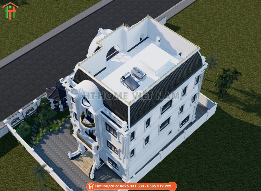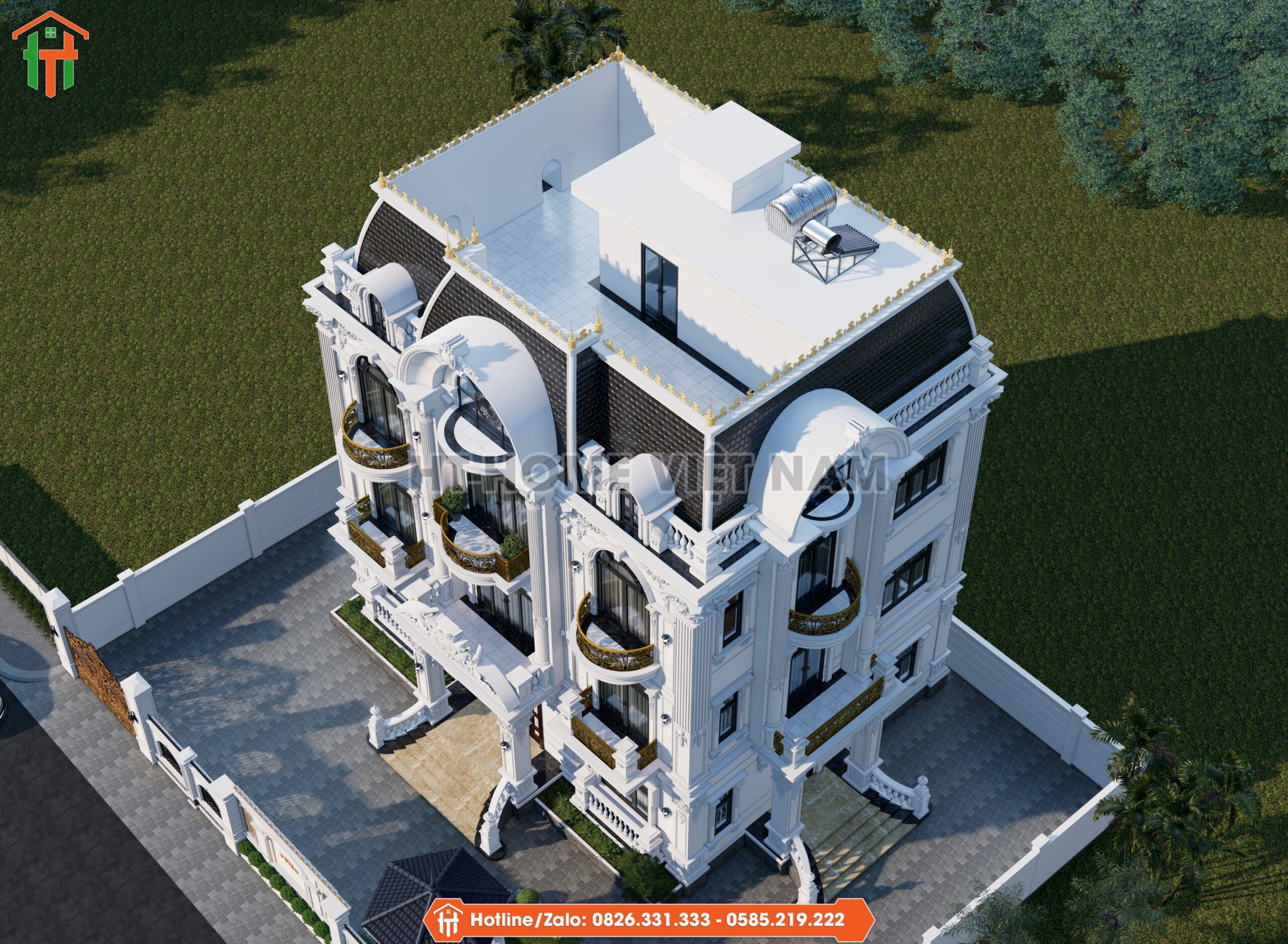 ông trình này của HT-Home Việt Nam là minh chứng rõ ràng. Với diện tích hơn 90m², biệt thự vẫn giữ được tinh thần cổ điển châu Âu mà không hề nặng nề. Sự phối hợp giữa mái Nhật thanh thoát và mặt tiền tân cổ điển tạo nên tổng thể hài hòa, sang trọng mà gần gũi. Đây chính là lý do khiến nó được xếp trong top biệt thự cổ điển nổi bật của năm.